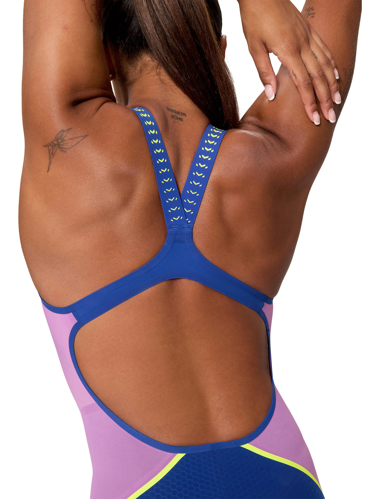 Maillot de compétition Fastskin LZR Pure Intent 2.0 Kneeskin Open Back pour femmes - Noble Navy/Neon Yellow