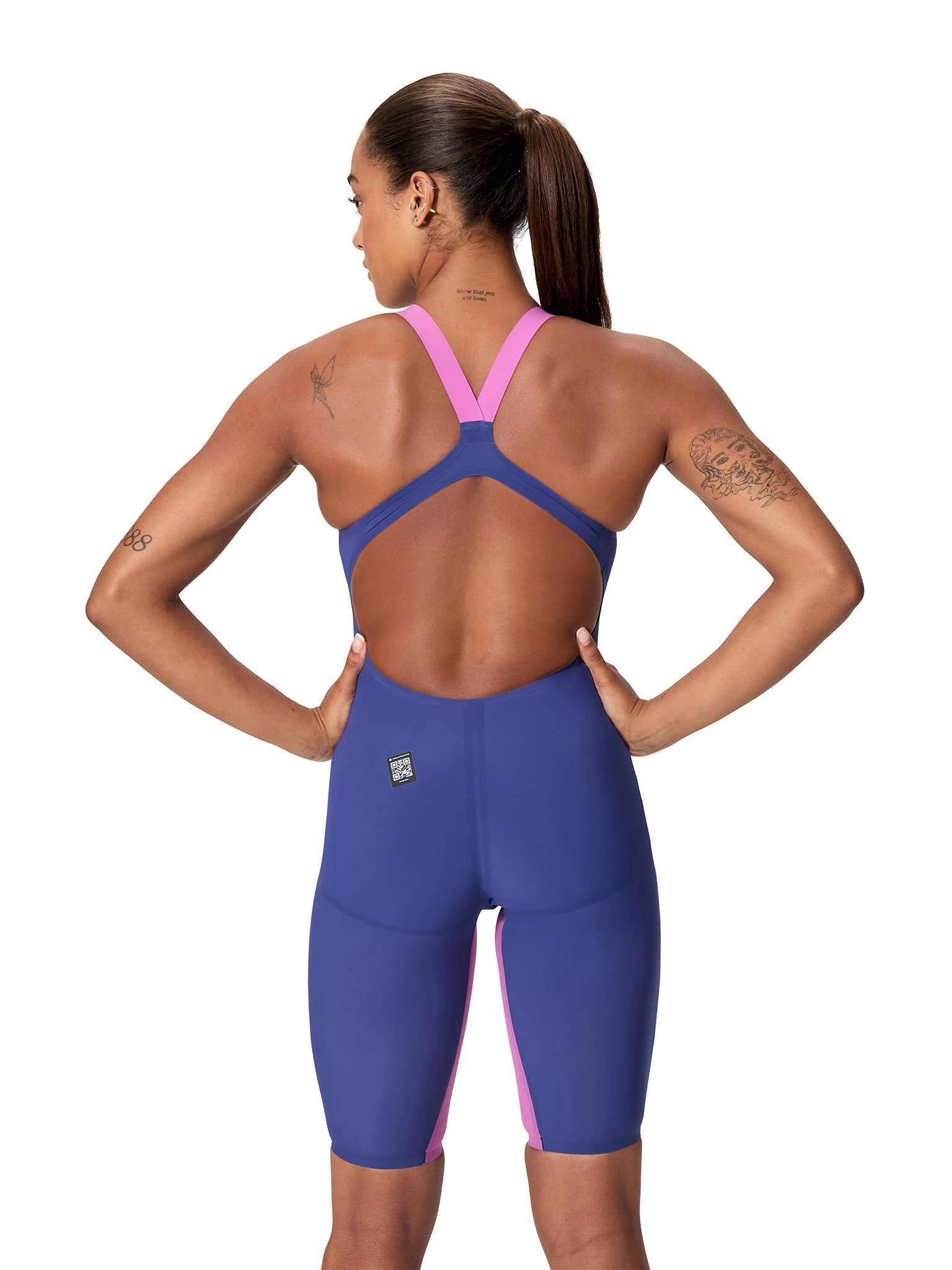 Maillot de compétition Fastskin Hyperspark Kneeskin Open Back pour femmes - Night/Sevres Blue