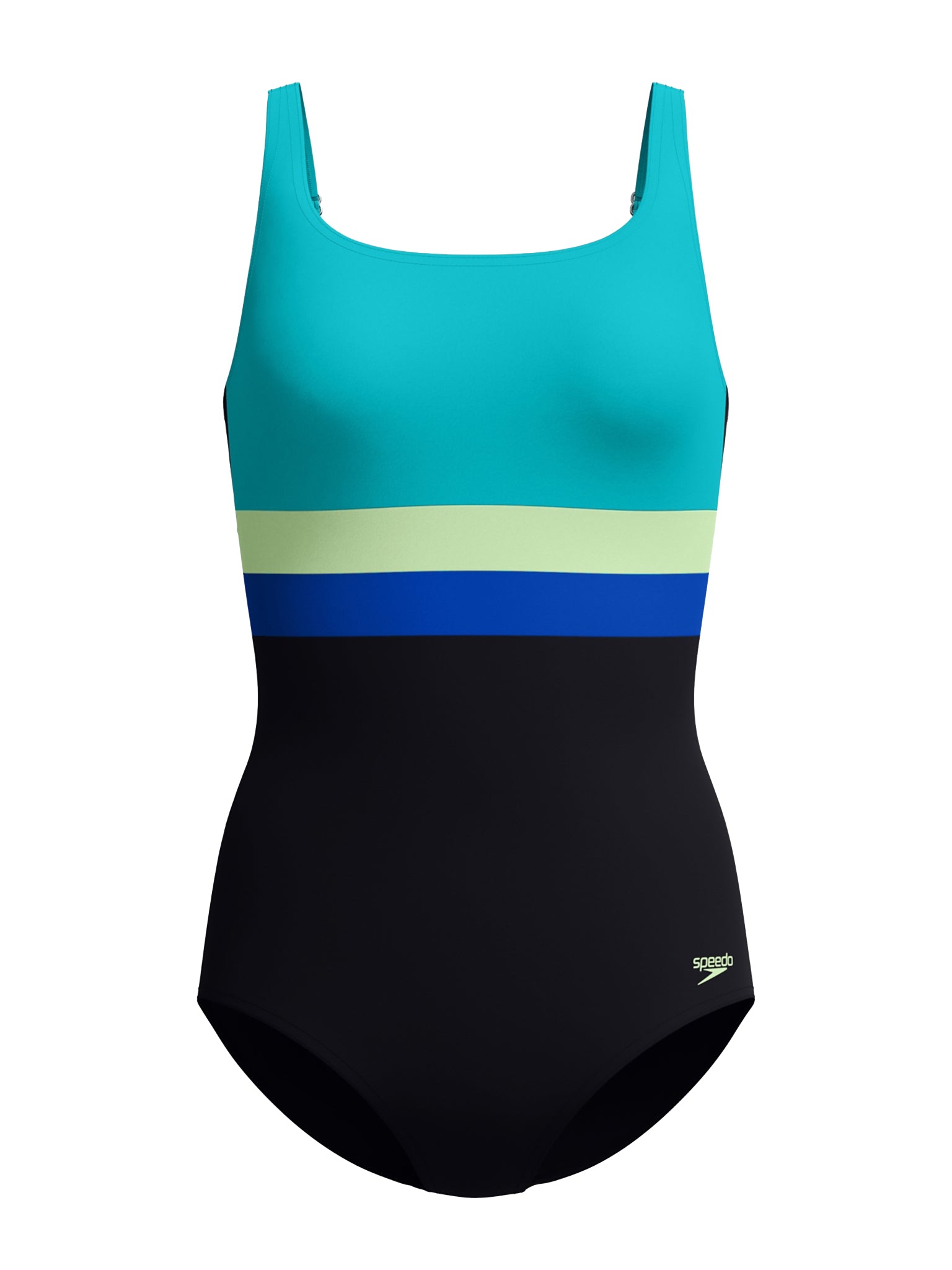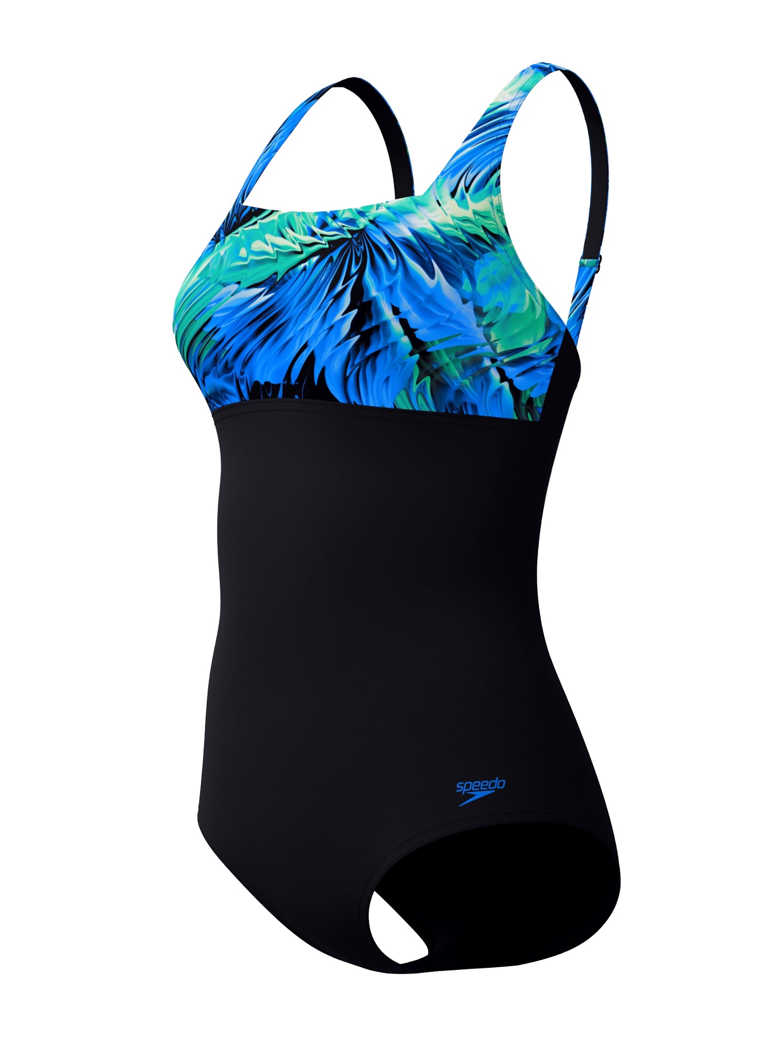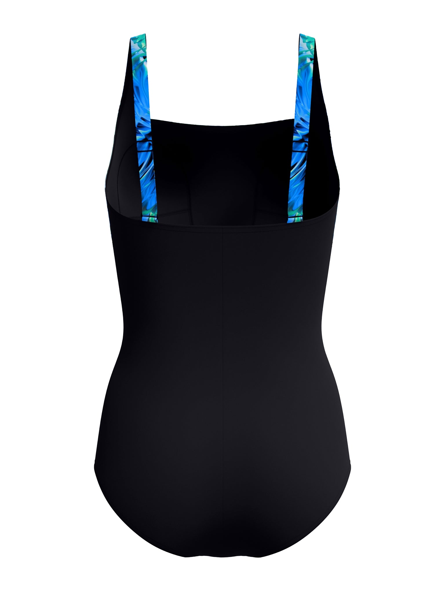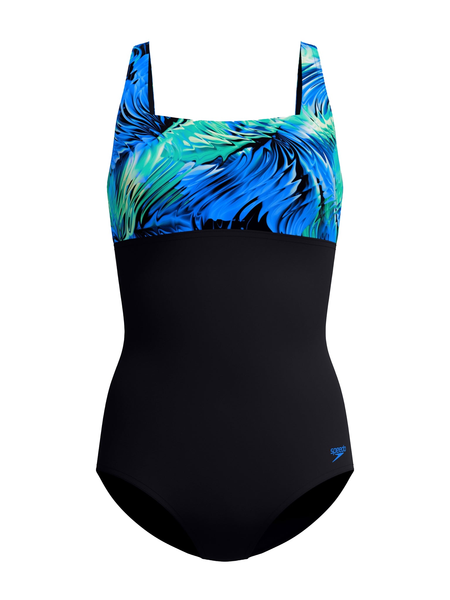 Maillot de bain une-pièce Printed Blocked Square Neck pour femmes - Noir/Bleu
