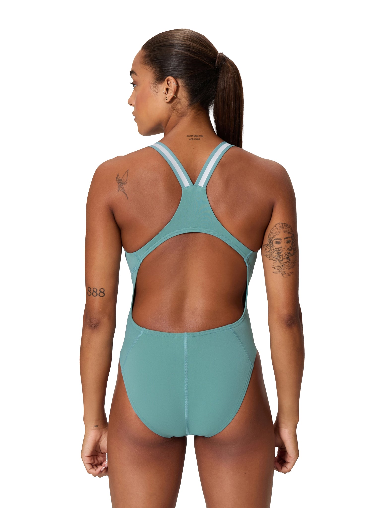 Maillot de bain une-pièce Solid Active Back pour femmes - Storm Green